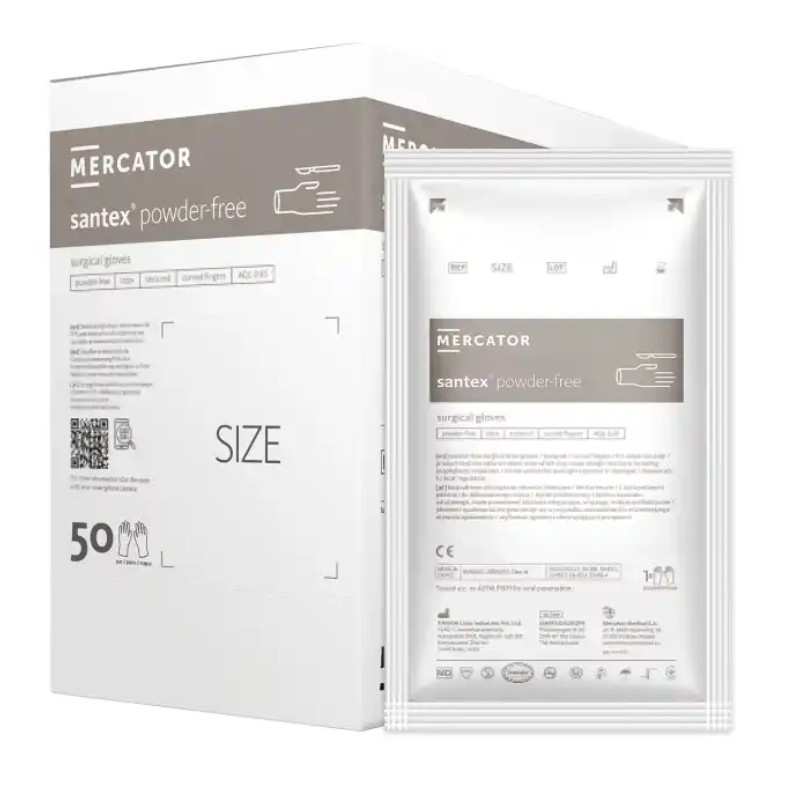 Manusile chirurgicale SANTEX Powder‑Free (OEM), marimea 8.0, sunt fabricate din latex natural, sterile si fara pudra, proiectate pentru a oferi protectie, confort si mobilitate optima in timpul interventiilor medicale. Materialul elastic permite miscari naturale si precise, iar textura fina ofera o prindere sigura a instrumentelor.