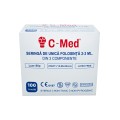 Seringa de unica folosinta 2-3 ml, realizata din 3 componente (cilindru, piston, garnitura cauciuc), prevazuta cu sistem Luer Slip pentru atasarea rapida a acului. Fabricata din polipropilena transparenta, cu gradatii clare si rezistente la stergere, permite dozarea precisa a solutiilor injectabile.